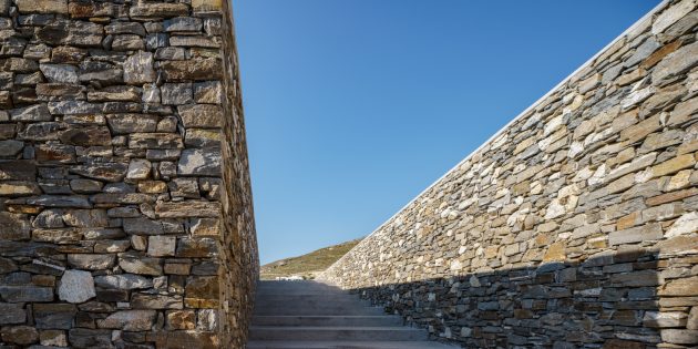 The work is situated at the Aghios Ioannis Detis location on the island of Paros. It has an eastwards orientation, with a view towards the sea and the Naoussa bay. The area is under a special protection order, and adjacent to it the Environmental Park of Aghios Ioannis Detis has been created.