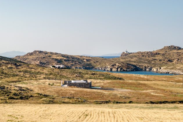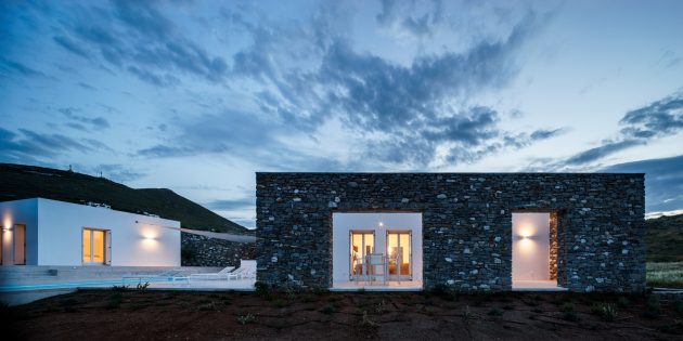 This 1,614 square feet home was designed by the Greek studio React Architects on a staggering 118,403 square feet plot that is shared between this and another house. Besides the plot, the houses also share a courtyard and a swimming pool, all of which are surrounded by a stone wall that “hugs” them, thus protecting the inhabited space.