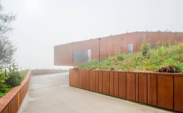 The design consists of a private zone including a study as well as recreation and relaxation amenities and a spa with several rooms forming the guest wing. The challenge consisted of inscribing the building representing so many different functionalities in the morphology of the plot of land. While the building acquired a rusty coating and a thick layer of greenery, it got lost in the landscape. The plot recovered from most of the traces of architectural intervention in a planned way, consistent with natural processes. Only the elements aimed at emphasizing the designed tectonics of the area remained visible.