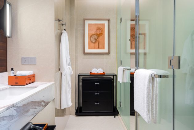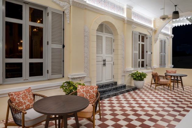 As guests pull into the hotel’s driveway, they are greeted with a welcoming centerpiece: a beautiful French heritage building flanked by sweet-smelling frangipani trees. Originally built as a colonial villa in the early 20th century, the carefully restored lemon-colored Colonial House with its wooden shutters, arched doorways and terracotta-tiled roof now serves as the hotel’s entrance, providing guests with a nostalgic arrival experience.