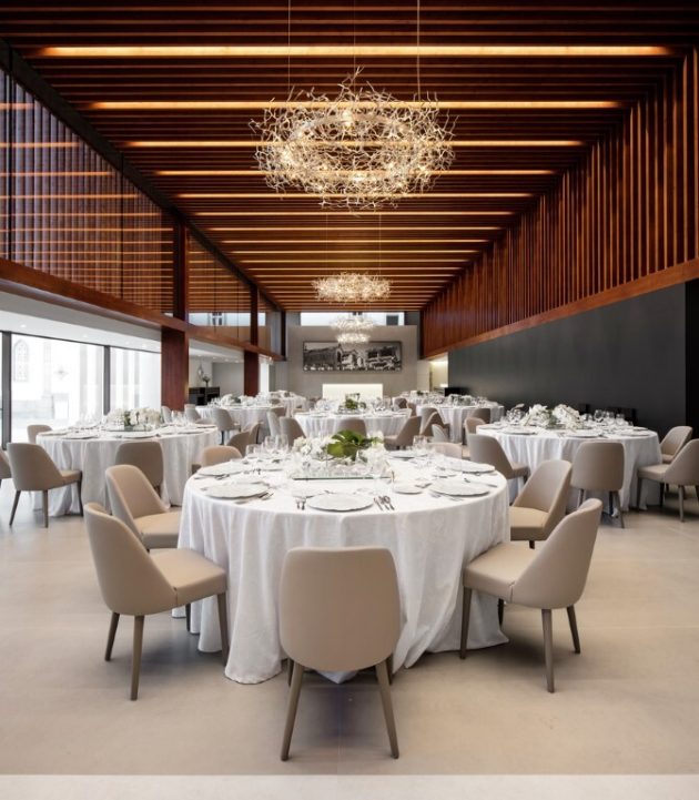 The indoor/outdoor relationship is stated by large windows without compromising the energy efficiency of the building. It is in this context that the slatted wood was introduced – evoking the local granaries – as well as the asymmetric flap in two planes, which delimits the entrance of the event buildings in a transition between the interior and the exterior.