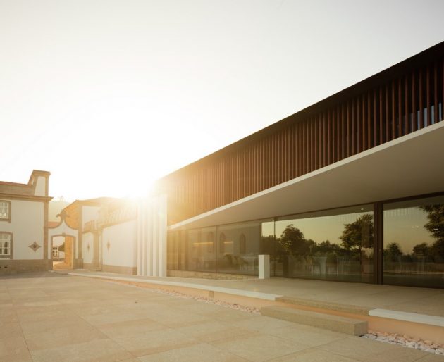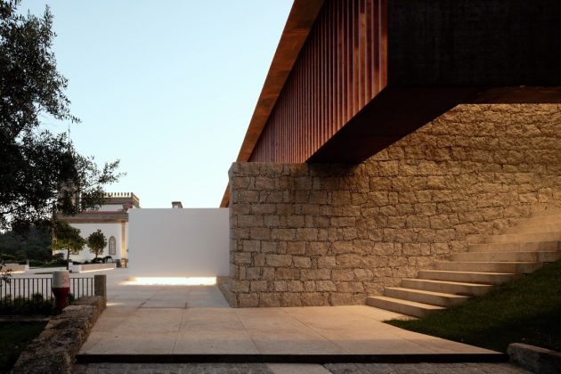 The Igreja Velha Palace is a building dating back to 1881. It was an important farm mansion with a baroque style appearance. It has received a contemporary addition by Visiorq Arquitectos, a studio whose work you might be familiar with from the QL House project in Faro, Portugal which was showcased on our site a while ago.