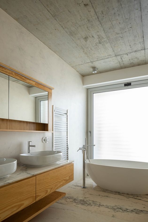 The interiors are frugal and the concrete ceilings and aluminum frames stand out, but it is undoubtedly Riga wood that brings comfort and detail to everyday life.