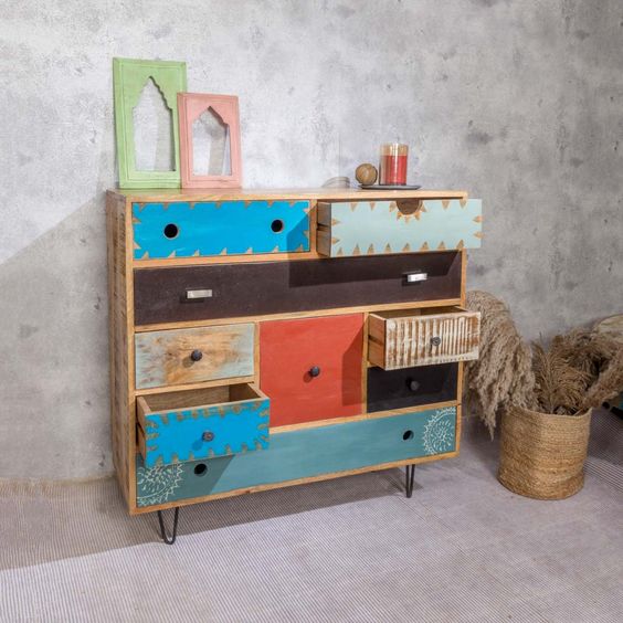 Another way to add a decorative element to a children’s chest of drawers is to use knobs or handles that are shaped like animals, flowers, or other fun designs. These knobs can be purchased in a variety of styles and colors, making it easy to find something that matches the overall theme of the room. For a more personalized touch, children can even create their own knobs using clay or other craft materials. Adding stickers or decals to the outside of the drawers is another way to make the chest of drawers unique. Children can choose their favorite characters or designs to create a fun and personalized look. Overall, the interior decor of a children’s chest of drawers can be both functional and playful, providing storage space while also adding to the overall aesthetic of the room.