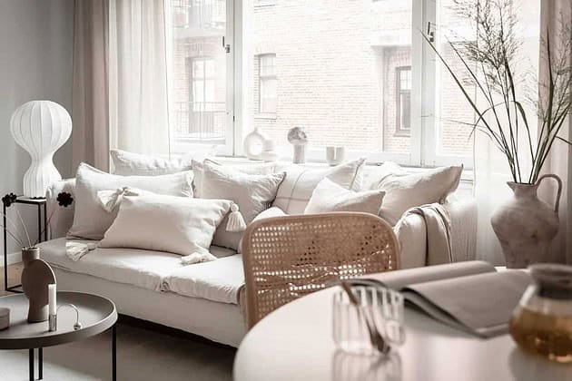 A few years ago the all-white or blank look with some Nordic detail was the most adopted trend in Nordic homes, those tones have gradually changed to a mixture of whites with beige, sand, and brown or light wood colors. They are all light tones that we call natural, taken directly from wicker, light wood, dry grass, etc.