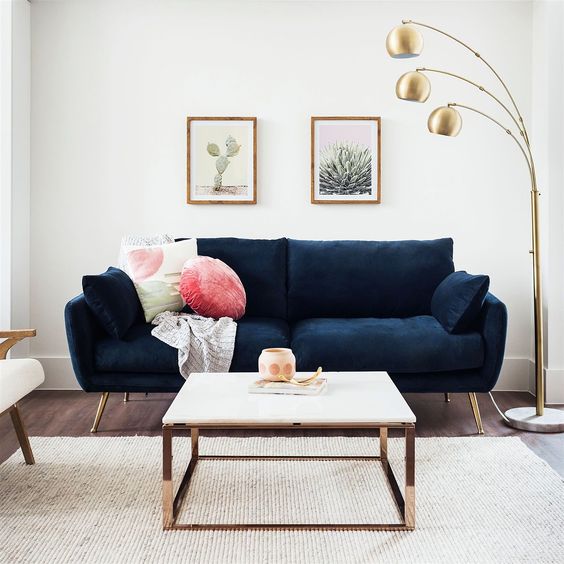 Check out now 10 decor ideas with a navy blue sofa and get inspired: