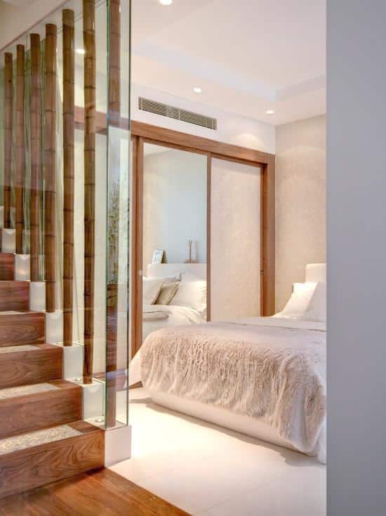 In the bedroom, bamboo can be coated on the roof as well as on the walls giving a natural and harmonic air to bring tranquility to space. If the proposal is to separate the spaces bet on a partition of bamboo cut in different sizes. The advantage of this idea is that it is much less thick than any other wall or partition. You can also use bamboo to make objects such as baskets, paintings, lamps, benches, supports, vases, etc.