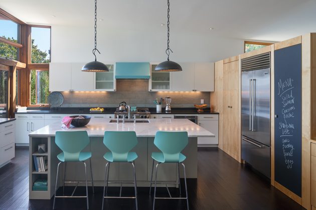 The Island Retreat Home is a stunning modern hillside home located on Bainbridge Island in Washington. Its modern Pacific Northwest-style adaptation creates 2,600 square feet of living spaces that are open towards breathtaking mountain views. It was designed by Coates Design, a studio you might remember from some of the previous articles featuring their Olympia Prairie House and Tumble Creek Cabin projects.
