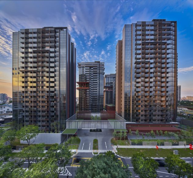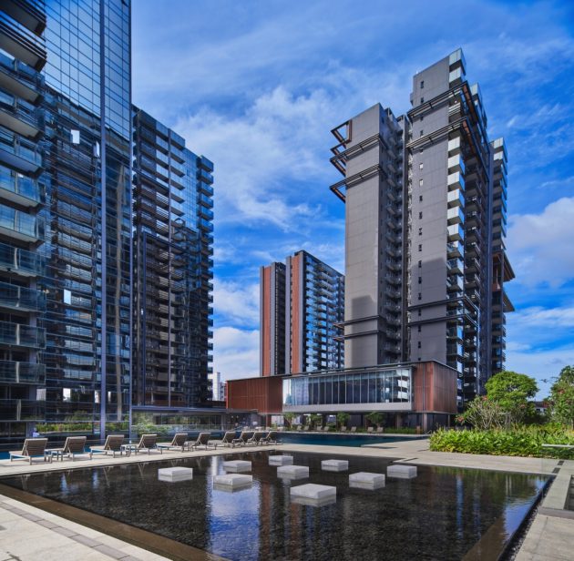 A collaboration between ONG&ONG and Tange Associates, this development was planned and designed in a manner where the facades of the towers are oriented toward MacRitchie Reservoir, creating a connection between them and maximizing the view towards the reservoir from each building.