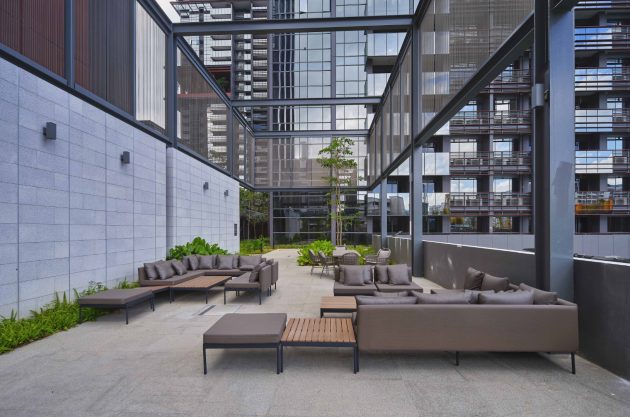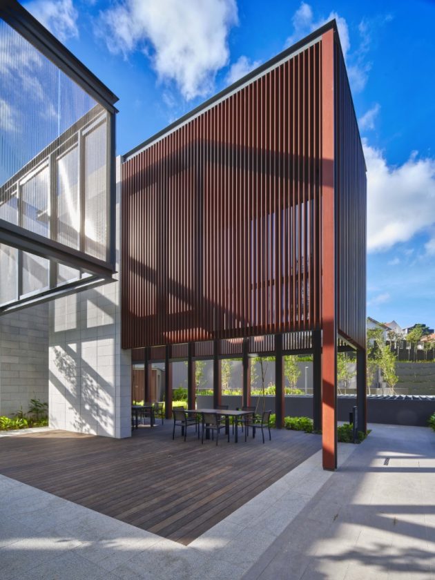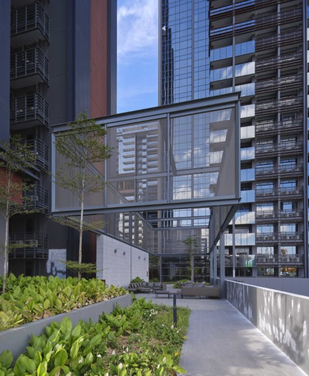 Another noteworthy feature that sets thus development apart is the way the tennis court has been designed. In order, to not obstruct the landscape views for its residents, the two tennis courts are built lower than the ground level. Being on the same level as the car park ensures that residents within the units are not interrupted by noise level.