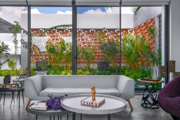 The Janapriya Residence is a wonderful contemporary dwelling located in Bengaluru, India. It was designed by Keystone Architects after a brief requirement by their client who wanted the structure of the home to be practically invisible. Not a simple task for a residence with just under 7,000 square feet of living spaces on offer, but nevertheless, they succeeded.
