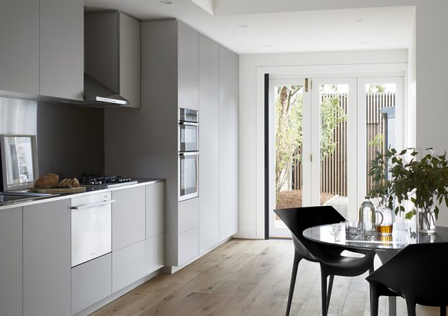 The new light court along the Southern boundary provides natural light and ventilation for the second bedroom/study as well as create a visual connection to the rear courtyard through the new window in the kitchen.