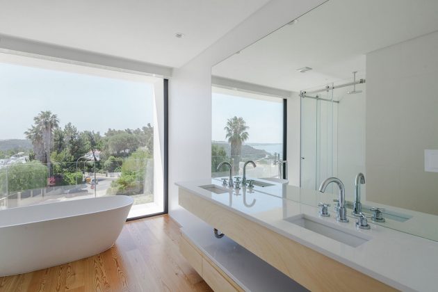 The JC House is located near the peak of Oeireas, Portugal with access to a beautiful overwatch of the river Tejo and the Atlantic Ocean further down. Its design belongs to JPS Atelier, a studio whose previous work on the ML House in the same area has already made its way on one of our showcases. This beautiful contemporary home certainly deserves some attention and you won’t regret seeing it. It’s got everything you might expect from such a home on such a location.