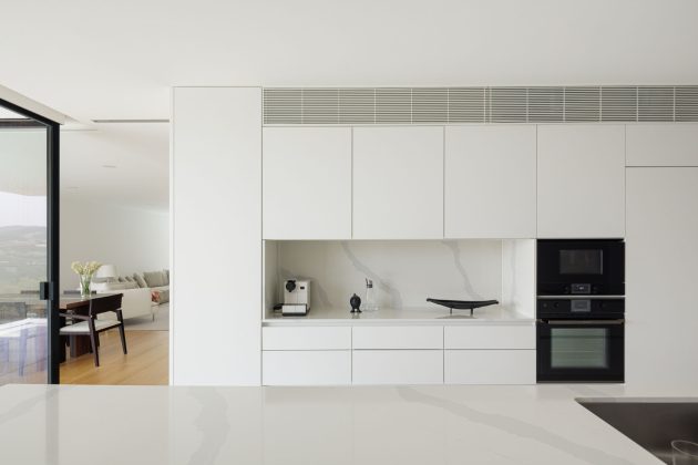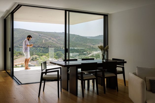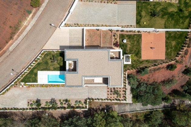 As such, the project idea is not to land a volume that becomes a dwelling, but to design a volume that conveys the idea that it was carved in the “site” (thus creating the feeling of union with the place) at the same time as it provokes the sensation that it is the volume that holds the hill itself.
