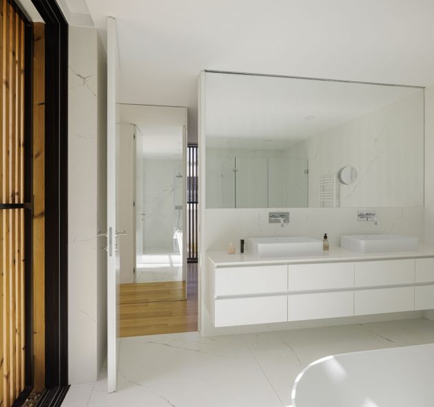 The relationship of the surrounding green space with the interior of the house helps to transform the building into a local element.