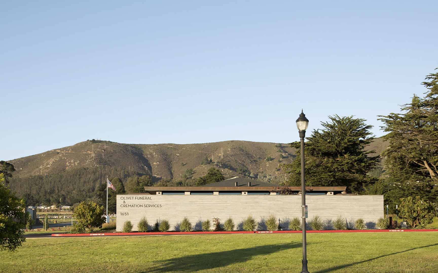 The simple design reflects the diversity of the Bay Area by accommodating all types of cultures and religious practices, affording families a contemplative place for celebrating their loved ones. Cypress Lawn recently acquired Olivet and continues to offer traditional funerals, burials, cremations, memorial and chapel services, lawn crypts, a columbarium, and mausoleums.