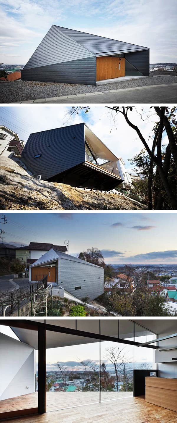 D.I.G Architects were faced with a challenging project – a house that should be located withing a tiny perched plot on the edge of a cliff overlooking Nagoya City in Japan. They had no choice but to dig into the cliff in order to build a base for the very, very unique structure.