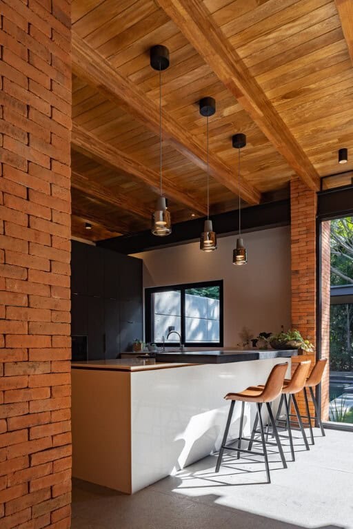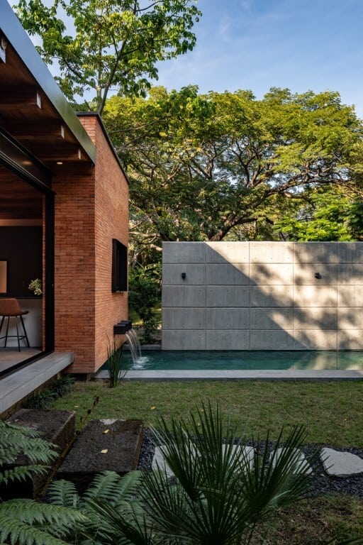 This U-shaped layout enables natural cross-ventilation and an organic connection to the garden and swimming pool — key to achieving thermal comfort in Colima’s tropical climate.