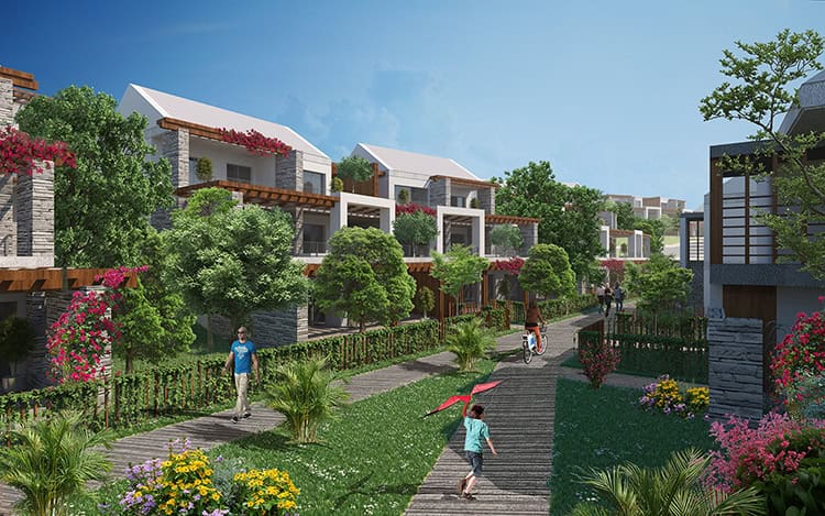 This unique natural character of the site forms the basis of the project concept, whose main aim is that the buildings should be designed to become partially lost in this natural atmosphere, and by harmonizing with the topography to spread and melt into the landscape. Similarly the atmosphere envisaged for users was that while enjoying themselves, relaxing or walking in the street they should imbibe the fragrance of nature. So in order to achieve this envisaged atmosphere for users and to enhance its effect, numerous green belts were created in residential area. By this means, the integration of land, design and the forestland surrounding the project area is provided.
