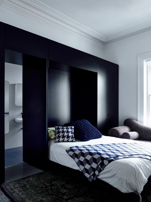At King Bill Austin Maynard Architects set out to completely re-think the terrace house and the principles that created them. Typically you walk through the front door of a terrace, past two bedrooms to the kitchen/living and small rear yard, which is usually overshadowed by the house itself. Austin Maynard Architects set aside these principles and looked at the house as empty spaces that needed new purpose. Holes have been punched through the boundary wall on the east and the entrance has been moved to the side to become a light filled corridor linking the old house with the stable and pavilion. With the entry moved, the original terrace entry porch is now a garden and the entry corridor is now a bathroom, which brings delight to the owners as they watch visitors scratch their head while they try to figure out how to find their way inside.
