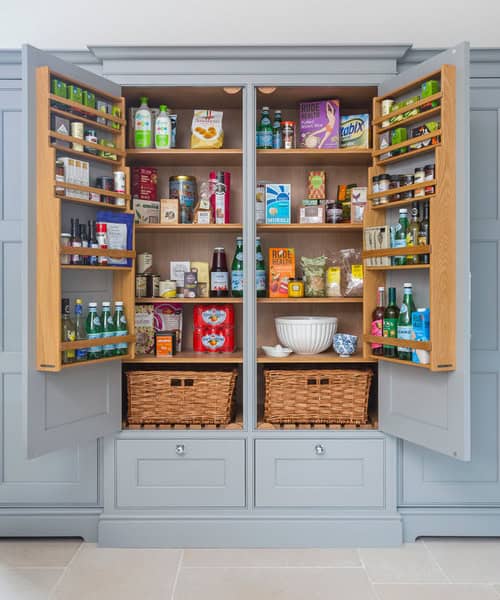 3. A handmade pantry with two doors, drawers and baskets packs a ton of smart storage into a relatively small space: 4 feet wide, 7 feet high and 2 feet deep.