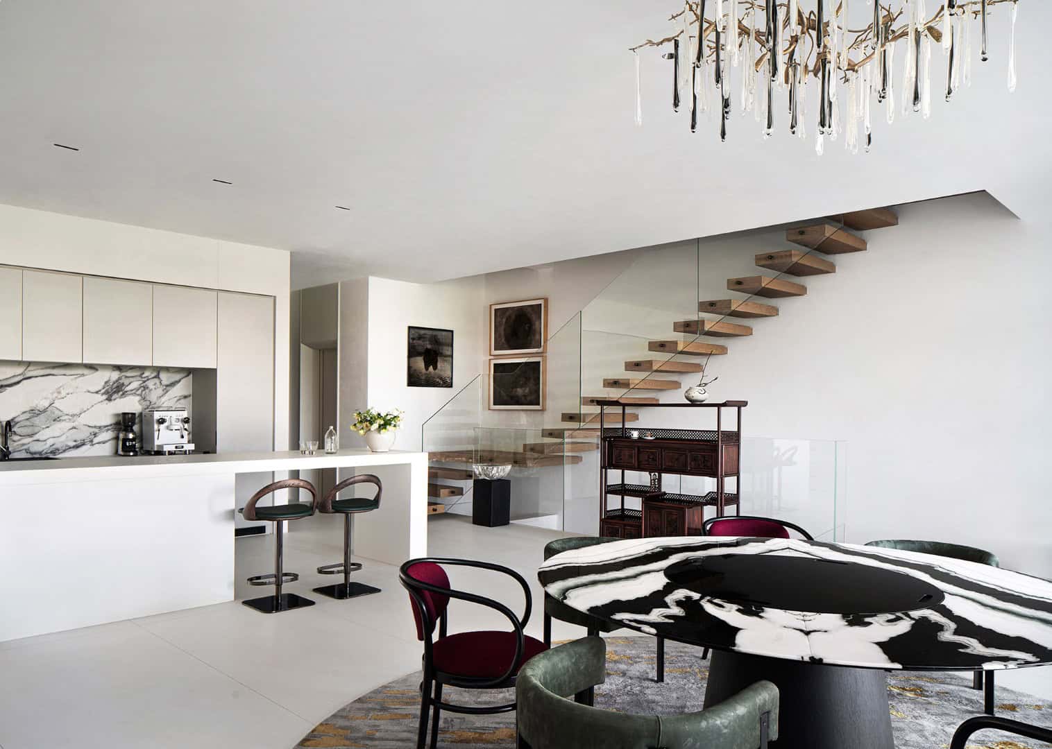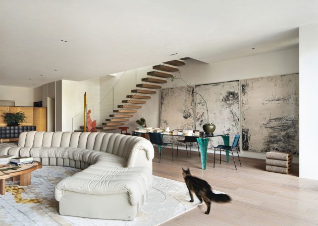 “The owner of this case is an elegant, successful woman with a keen eye for aesthetics. Her collection of modern art shows her luxurious lifestyle. At the beginning of the design, she expressed her desire to create an artistic living habitat for her family and herself, so that art is always present in life and often echoes with cultural resonance,” says the designer.