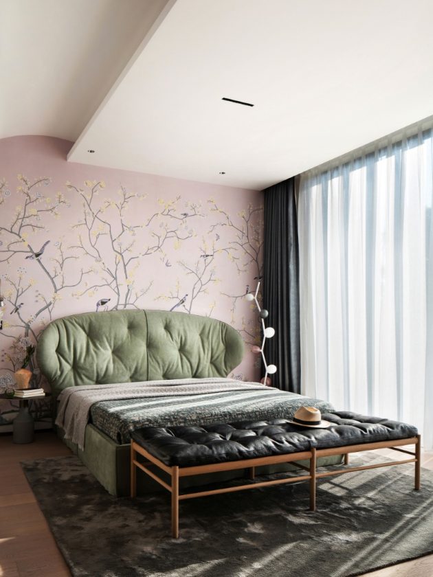 Capturing light and shadow, gentle breeze and pure nature, every scene in the space is elegantly detailed and vivid, soothing the mind and body and giving a sense of belonging to the environment based on the philosophy of artistic living in the master bedroom.