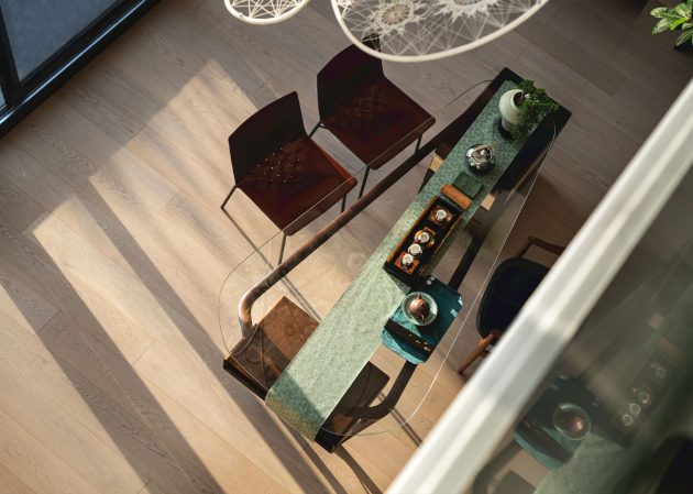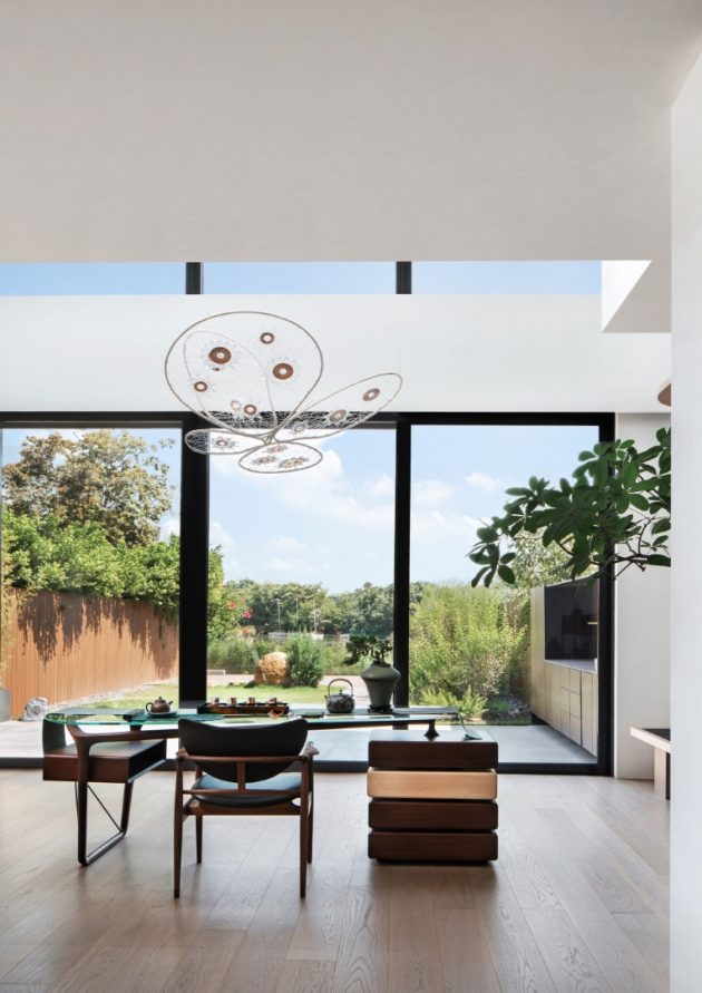 The negative floor is a central place for the family’s leisure activities. Each family member can find a corner where they can relax comfortably, all together but without disturbing each other. “The humanity in the space comes from the intertwined smell of family and the taste of culture.”