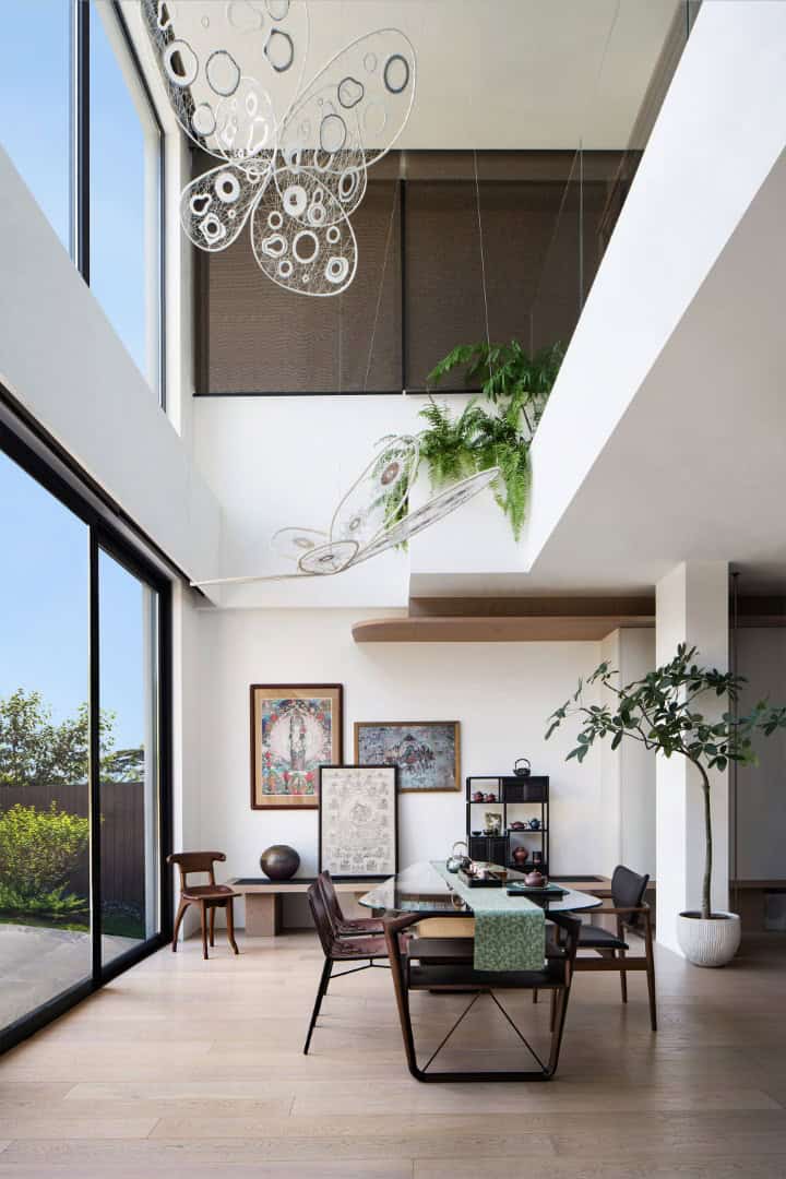 The hollow layout is created to link the separate first and lower ground floor, delivering aesthetics that surpasses nature with the ornament of butterfly art installation. The two butterflies are motivated by artist Li Zhou’s “Metamorphosis,” which uses traditional weaving techniques to produce flexible wire in a form that is light and dynamic, like a butterfly escaping from its cocoon and illustrating the tension of rebirth. Finally, the two separate floors are linked flexibly, bring splendid scenery.
