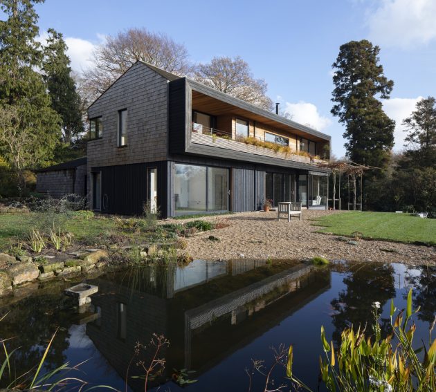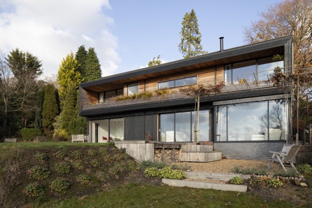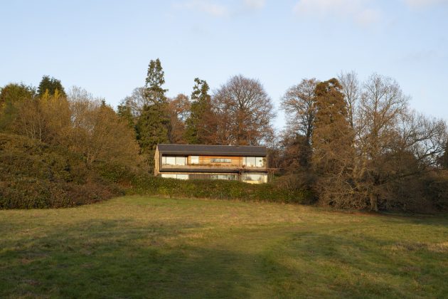 The design of the Lane End House is focused around the natural woodland surroundings of the site and its stunning views. It is an energy-efficient home that incorporates natural materials into its construction and design, rendering it perfectly within the environment.