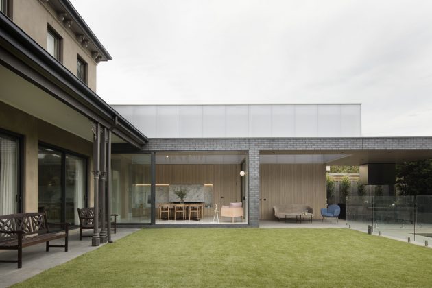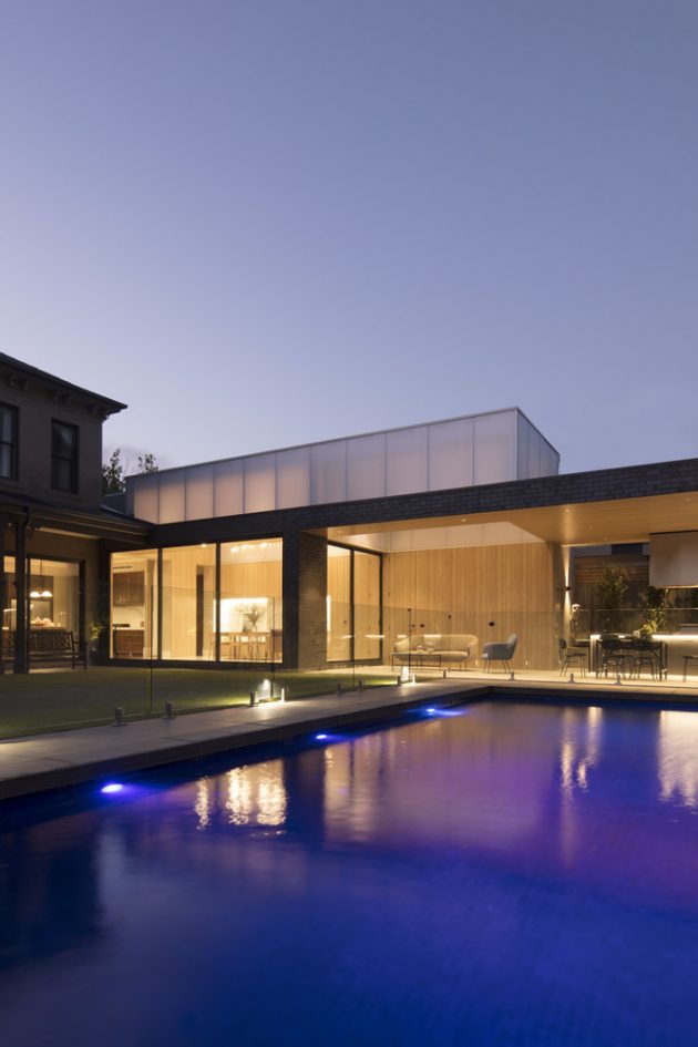 Pitch Architecture + Developments has completed the Lantern House – an extension of a Victorian house in Melbourne’s quiet Kew neighborhood. Even though the existing Victorian house has two levels, the extensions is a single-story modern space with direct access to a beautifully landscaped deck with a swimming pool.