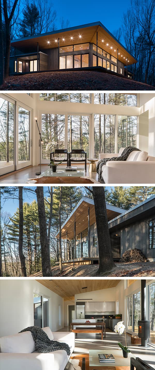 The Lantern Ridge House is a project by the New York based Studio MM. It is located in a serene, forested location in the Hudson valley, more precisely in Kerhonkson, New York.