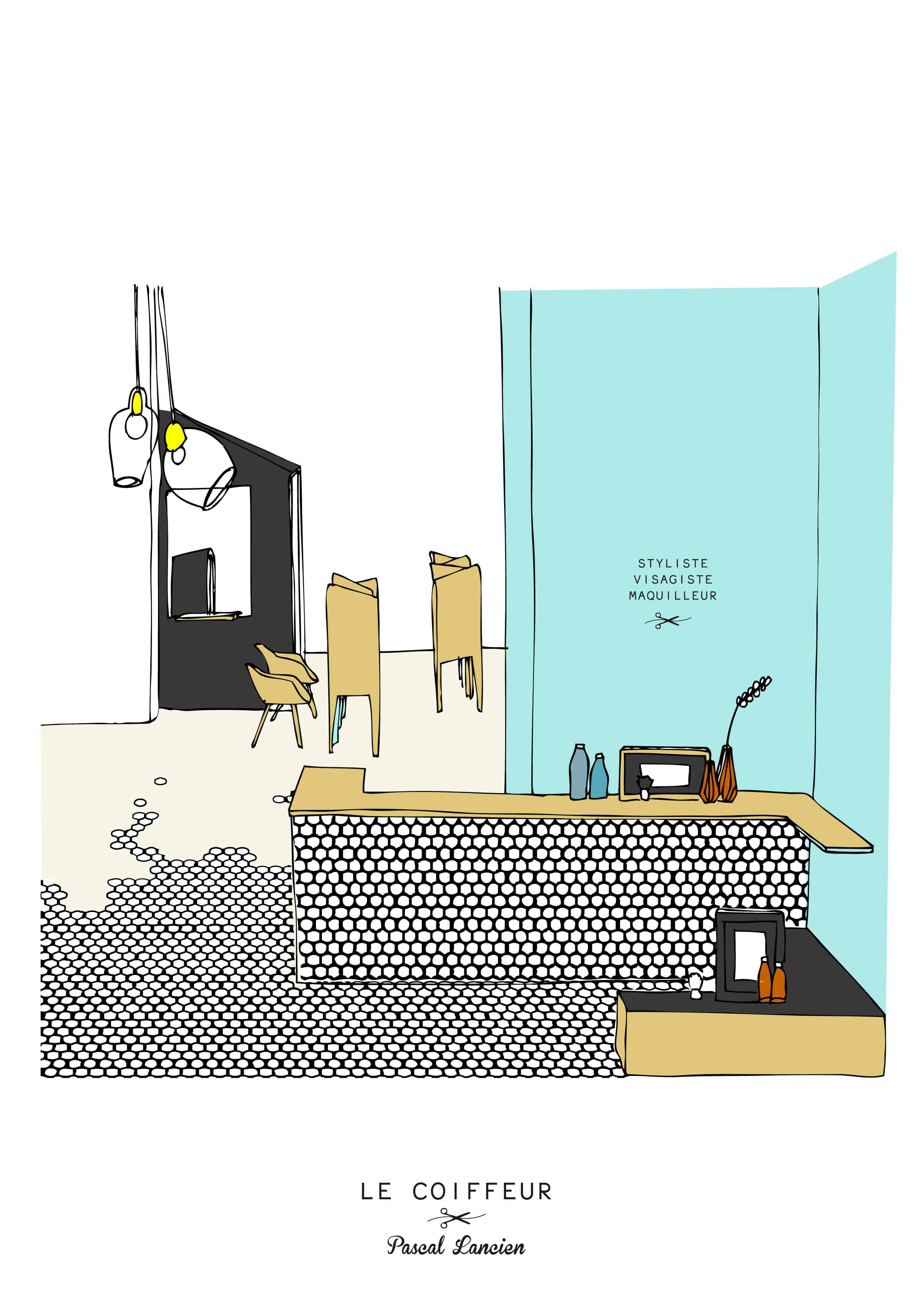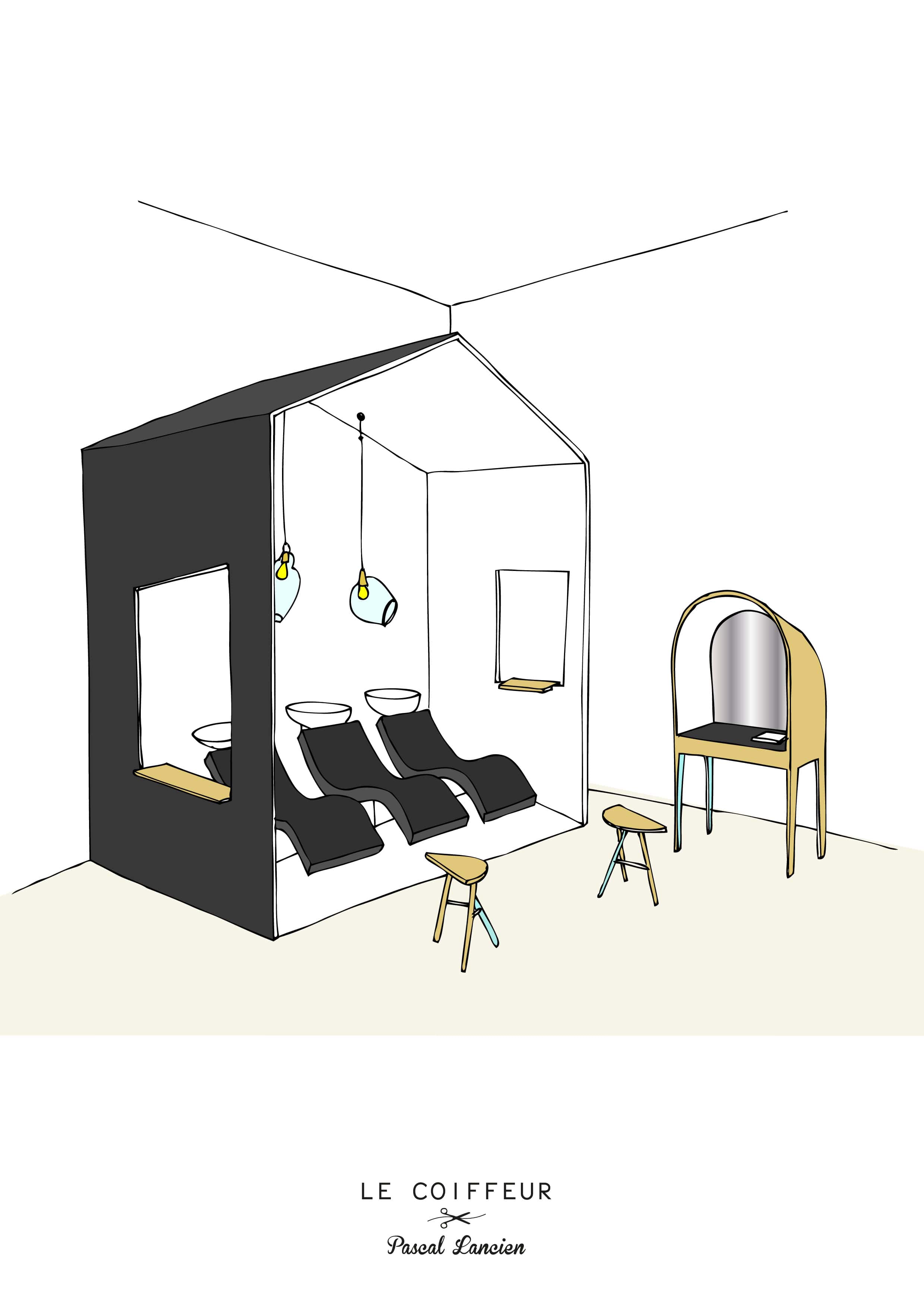 Hairdresser space Le Coiffeur by Margaux Keller, in association with Bertrand Guillon architect.