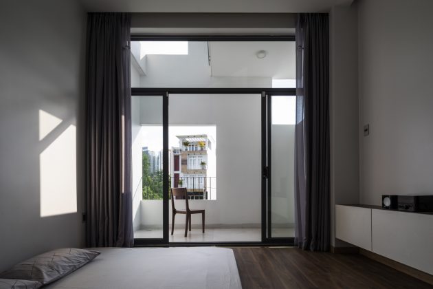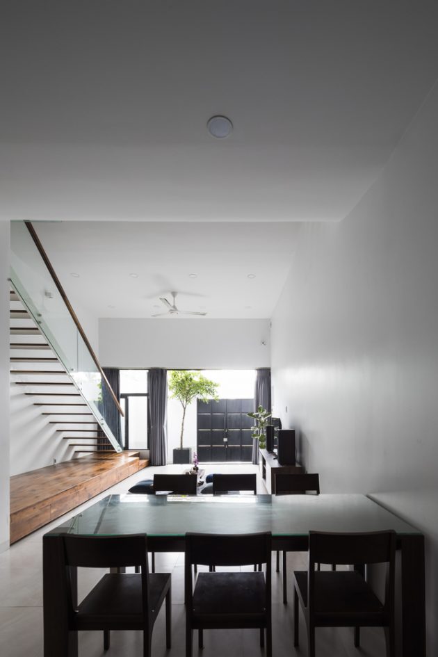 Further, the principal architect designed the wells on the top of the roof that the sunshine can reach from sky to inside of the house strongly to light the house without electricity. The width of the skyline of the stair is large to help to link the spaces together horizontally. On the other hand, the skylines of Lien Thong houses connect the spaces inside the house vertically. In Ho Chi Minh City Vietnam, the modern – longhouses are usually built lack of light can damage the health of the owner. Therefore, Lien Thong house is a simple solution to this problem. Besides, the house is a respectable idea of the westward house.