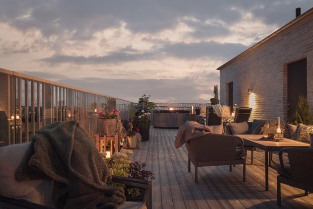 Dining and barbecue area, chill out sofa area for several, reading area for few, Jacuzzi area for two and look at the lighting, beautiful right? Does that environment invite you to spend hours out there?