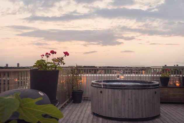 Take a good look at the terrace of this 5th floor, it is the duplex solarium and has everything you need to spend an evening with friends or alone with your partner and we say well-veiled, because there is no porch, just on less hot days it could be used here in summer.
