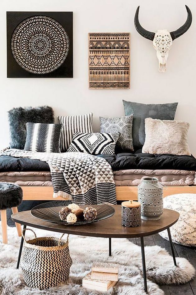 – For the statuettes, in moderation. African art can be found in many ways (like a framed painting) without overloading the room.