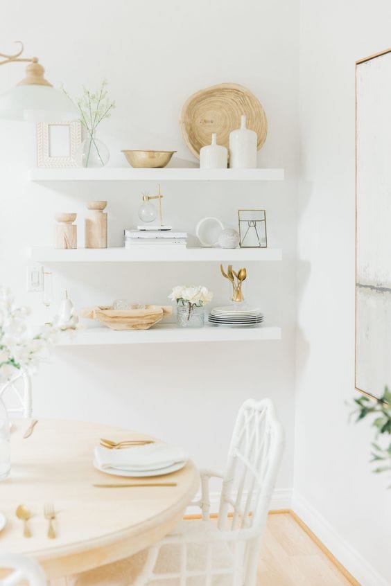 Regardless of their size, the light white shelves are perfect for the living room or bedroom. They order, decorate and, in addition, they make the rooms appear larger and brighter. Choosing them is a guarantee of success!