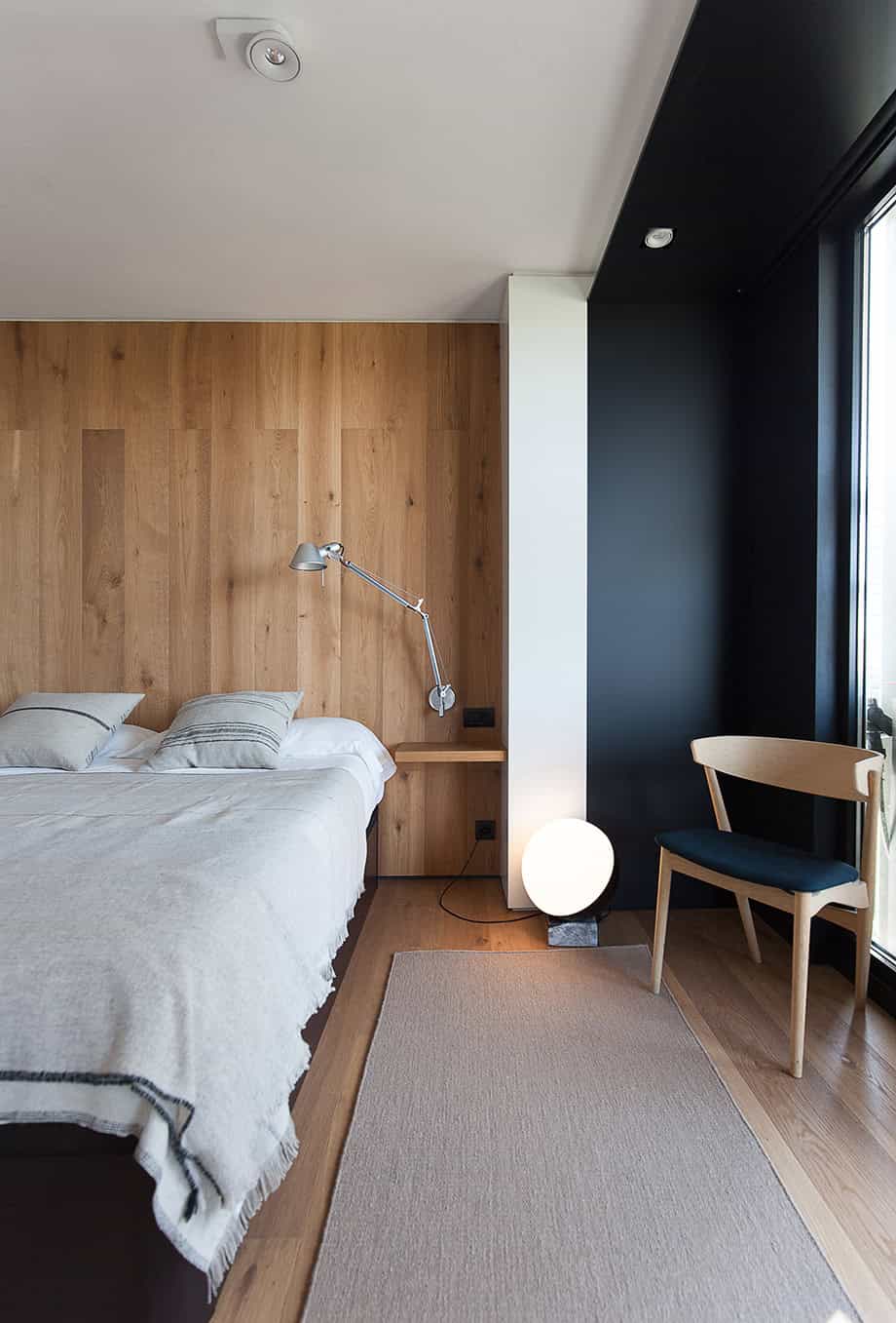 Rather than compartmentalizing, the layout blurs boundaries. A pivoting door differentiates kitchen from foyer, while sliding panels let the space open up. A central structural element doubles as a view frame and support column, subtly reinforcing the narrative of landscape.
