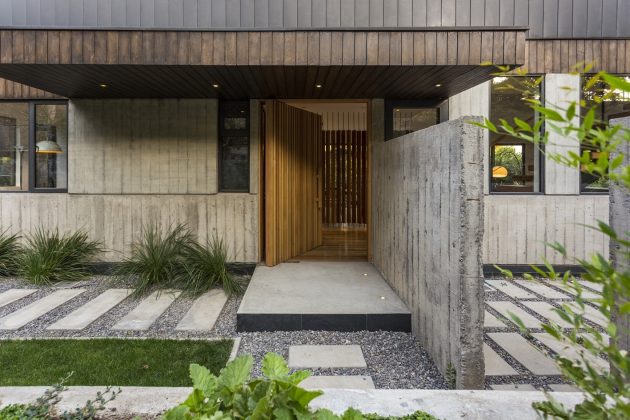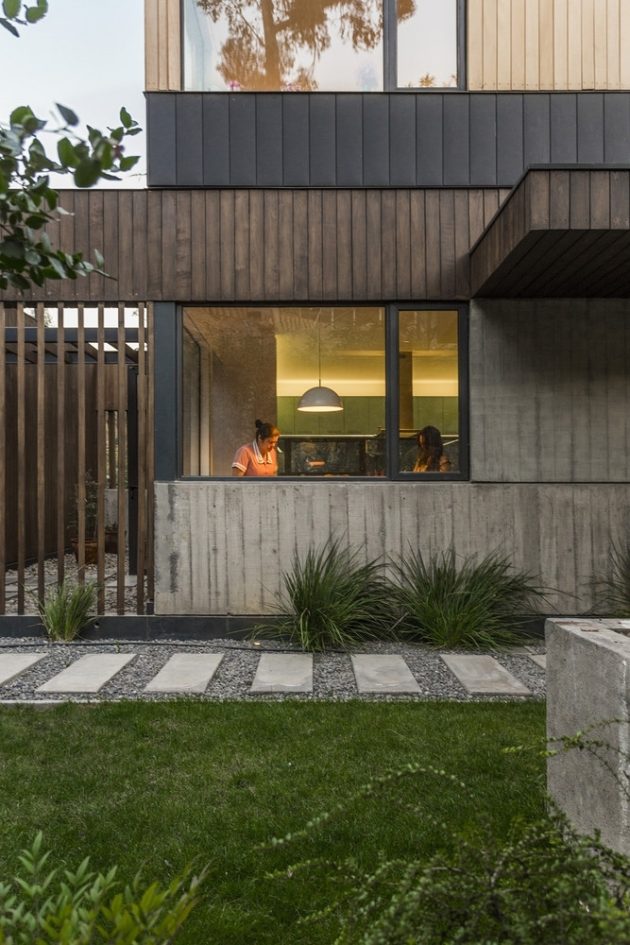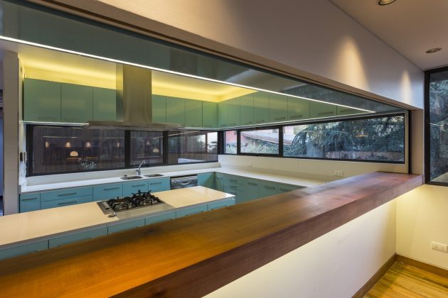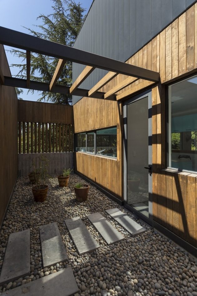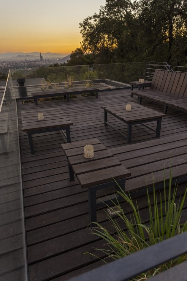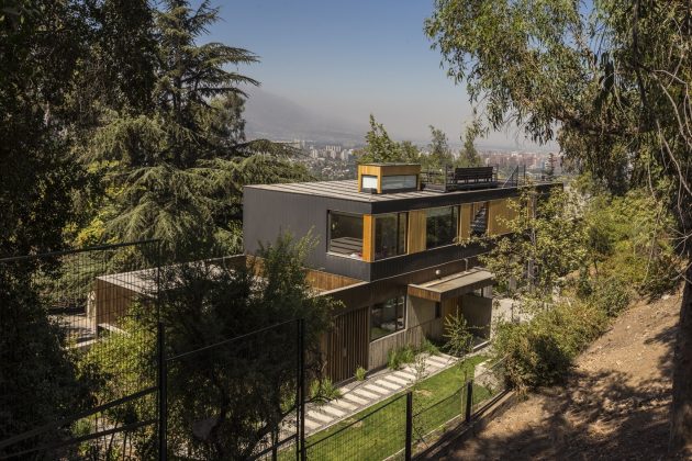 The Lo Curro House, designed by architect Nicolas Loi, is located in a residential area of Santiago, Chile with great views of the city. The ground level of the house is a continuous space that includes the family area, living room, dining room, kitchen and an interior courtyard, while the bedrooms are located on the first floor and a rooftop terrace on the top of the house.