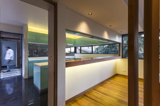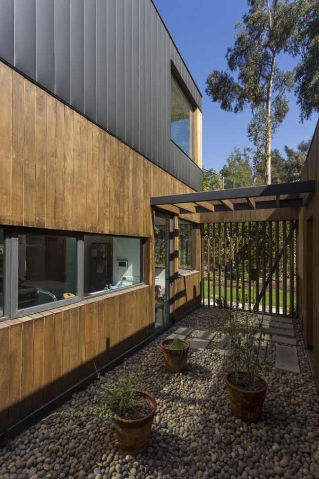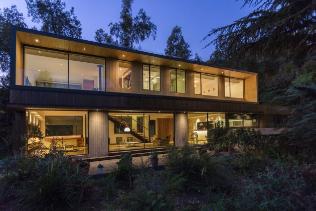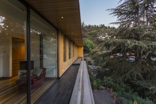 The house is located in Lo Curro, a residential area of Santiago, Chile. The area has some hills and forest, with a great view of the city of Santiago. The design strategy is based on a 7 x 25 meter rectangle, located over an existing parking space.