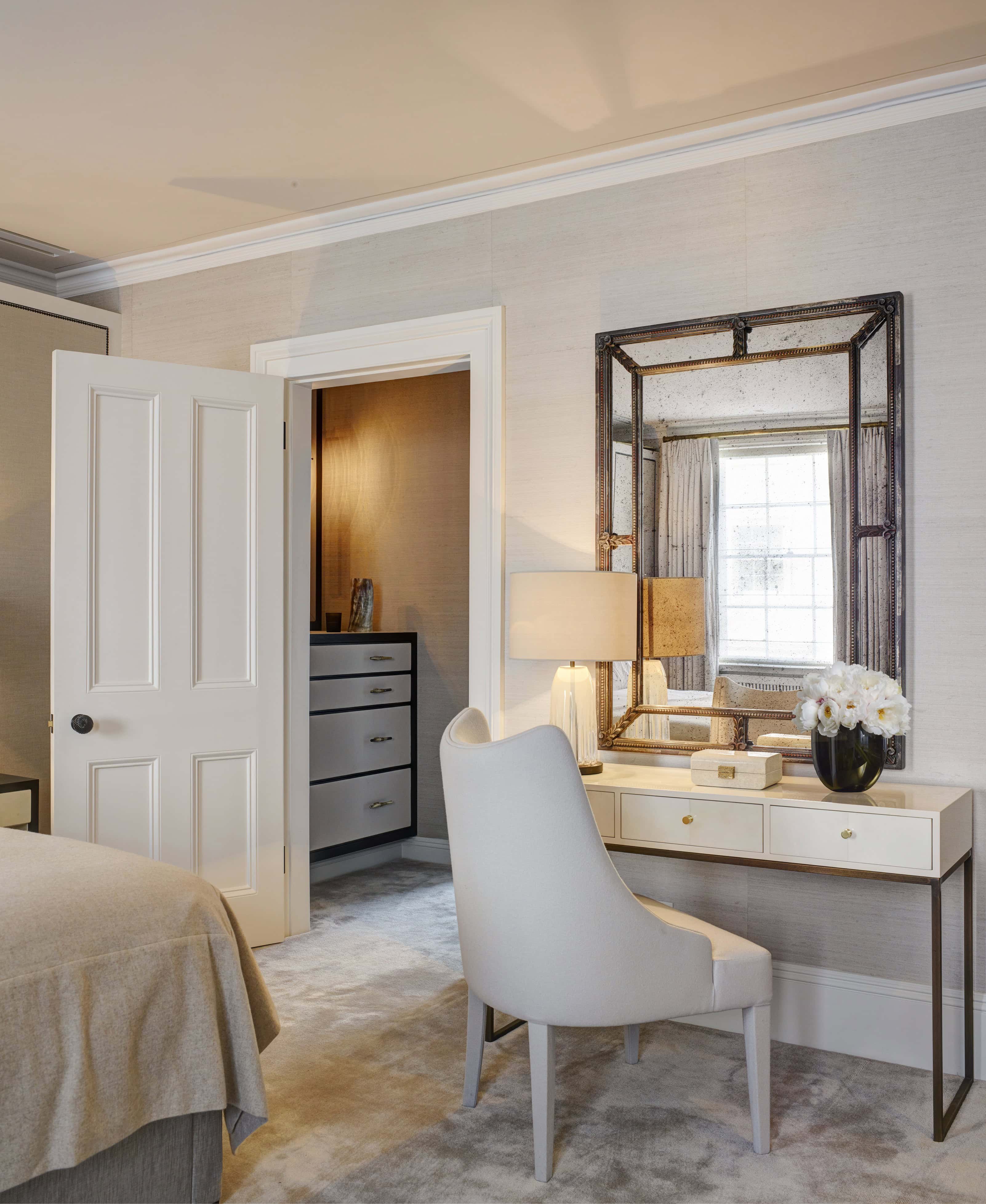 Rooms were remodelled to enhance the proportions and improve the layout and flow. From darkly sophisticated tailored reception rooms to a lighter, cooler palette for the relaxing bedrooms and chic bathrooms.