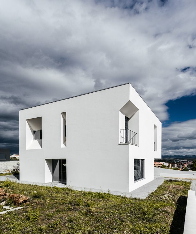 ADOFF – Arquitetos have designed the Lot 31 House on a square lot in Mirandela, Portugal. This crisp white home offers a contemporary lifestyle with a minimalist interior layout. The home opens up to beautiful, distant views so it features plenty of windows that also ensure the interior gets its share of sunlight.