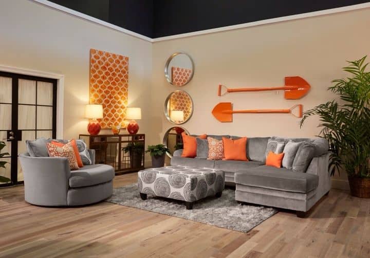 Accented details, for example-the pillows, have always been the true source of colors and patterns for living and sleeping rooms, therefore, they are perfect when it comes to adding orange tones to our homes. Orange is perfectly complementary to blue and only a few accent pillows in this color are enough to finish your job. If you do not want to add this color to your living room through chairs, sofas or lighting, it may be best to try with coffee tables. They can be small, accent pieces that are perfect for this task. Moreover, the living room tables are very versatile and useful in various configurations and settings, including seating areas, reading nooks, bedrooms, home offices, etc… These are some simple ways to add orange in your home, take a look below and you will see much more!