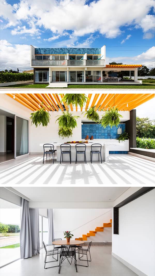 The few walls in the ground floor and the rigor in the floor plan of the first floor allow closings that in a continuous and sequential way, talk among themselves to the horizontal yellow plane of the imposing pergolas. In these, the essence of the house is made, harmonizing with the blue of the hydraulic tiles and untying of the whole. This set of yellow and blue elements, present on the terrace and crowning of the building, is joined to the strong geometric rigor of the straight lines and compose pure volumes that seek to grant identity to the work.