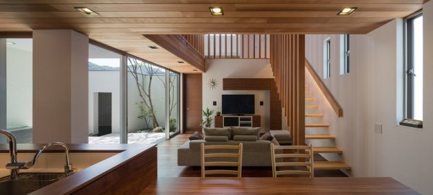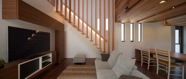 The M4 House is located in a quiet district of the Nagasaki prefecture in Japan. It was designed by Architect Show as a rhythmic series of volumes which create a private, and secure environment. The volumes form a garage and an upper story with bedrooms and several overhangs that add to the musicality of the design. The ground level is designed as an open plan that creates an expansive volume for social functions.