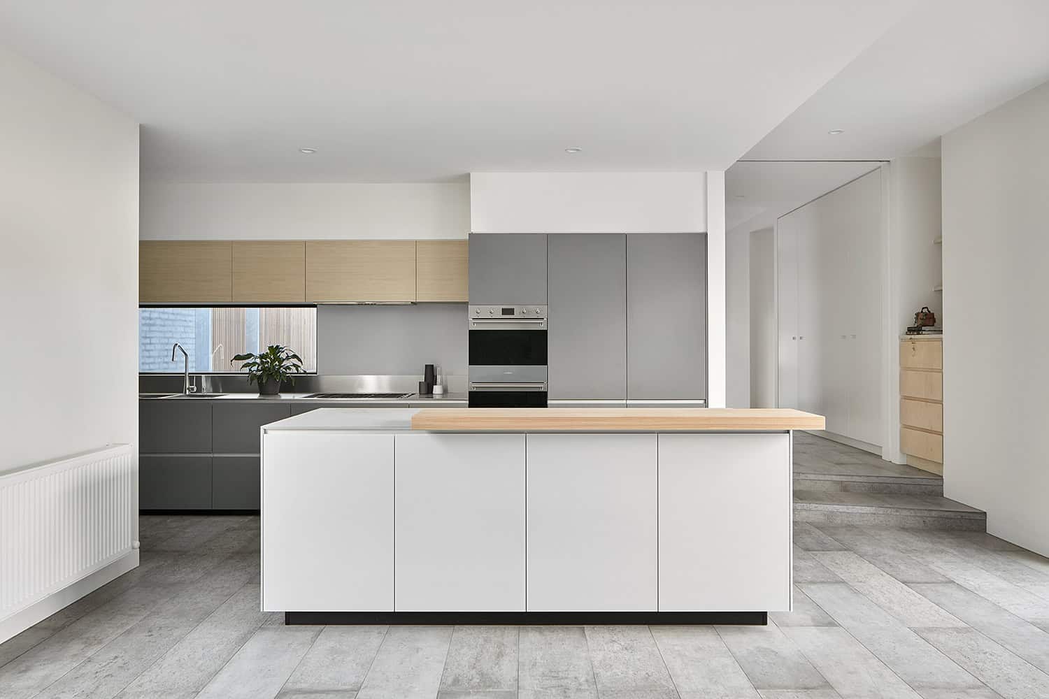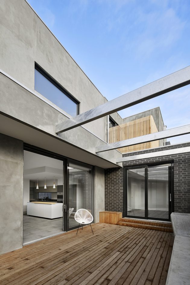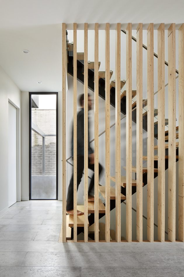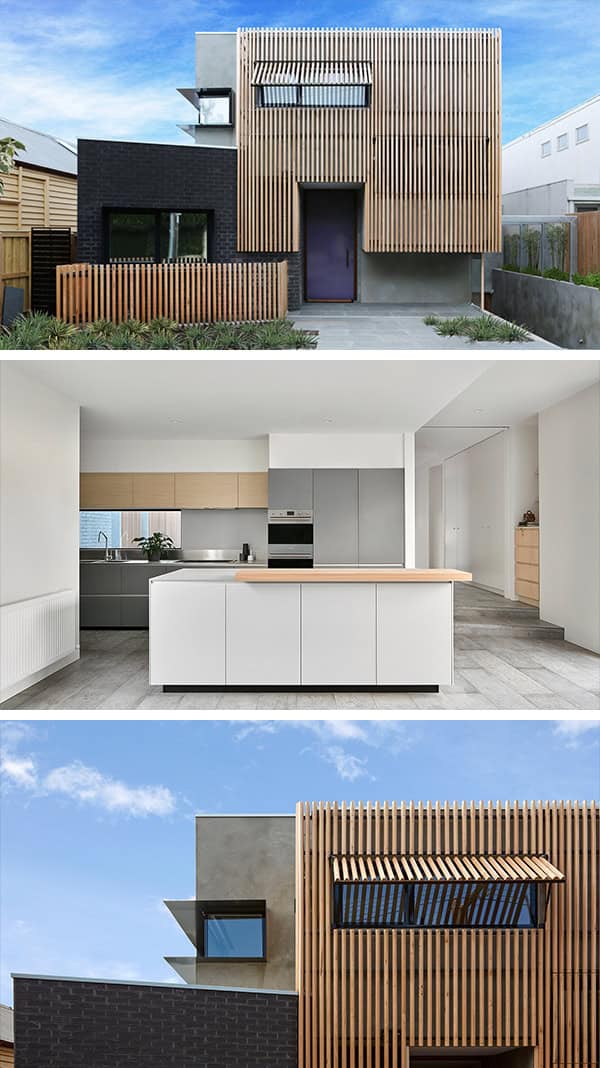 From the architects: “This new home is in Malvern, and sits on a tight lane, with small street setbacks to most properties, with a sense of inner city living. This home replaced a single storey weatherboard miner’s cottage, and attempts to provide an improved use of the land, with a two storey home plus a basement.