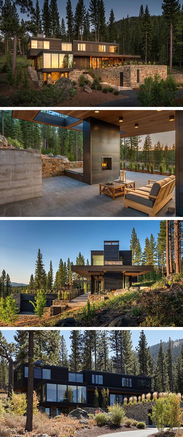 From the architects: “Martis Camp is a 2,200 acre multigenerational ski and golf club located between historic Truckee, California, and Lake Tahoe. Over 600 one to five acre single family lots are planned with small groups of lots being released at a time. This 6,000 square foot development project is sited on an acre of steeply sloping, wooded terrain, with phenomenal views of the Carson mountain range to the north and west. The placement and footprint of the house preserves the natural site features through minimal grading and tree removal.”