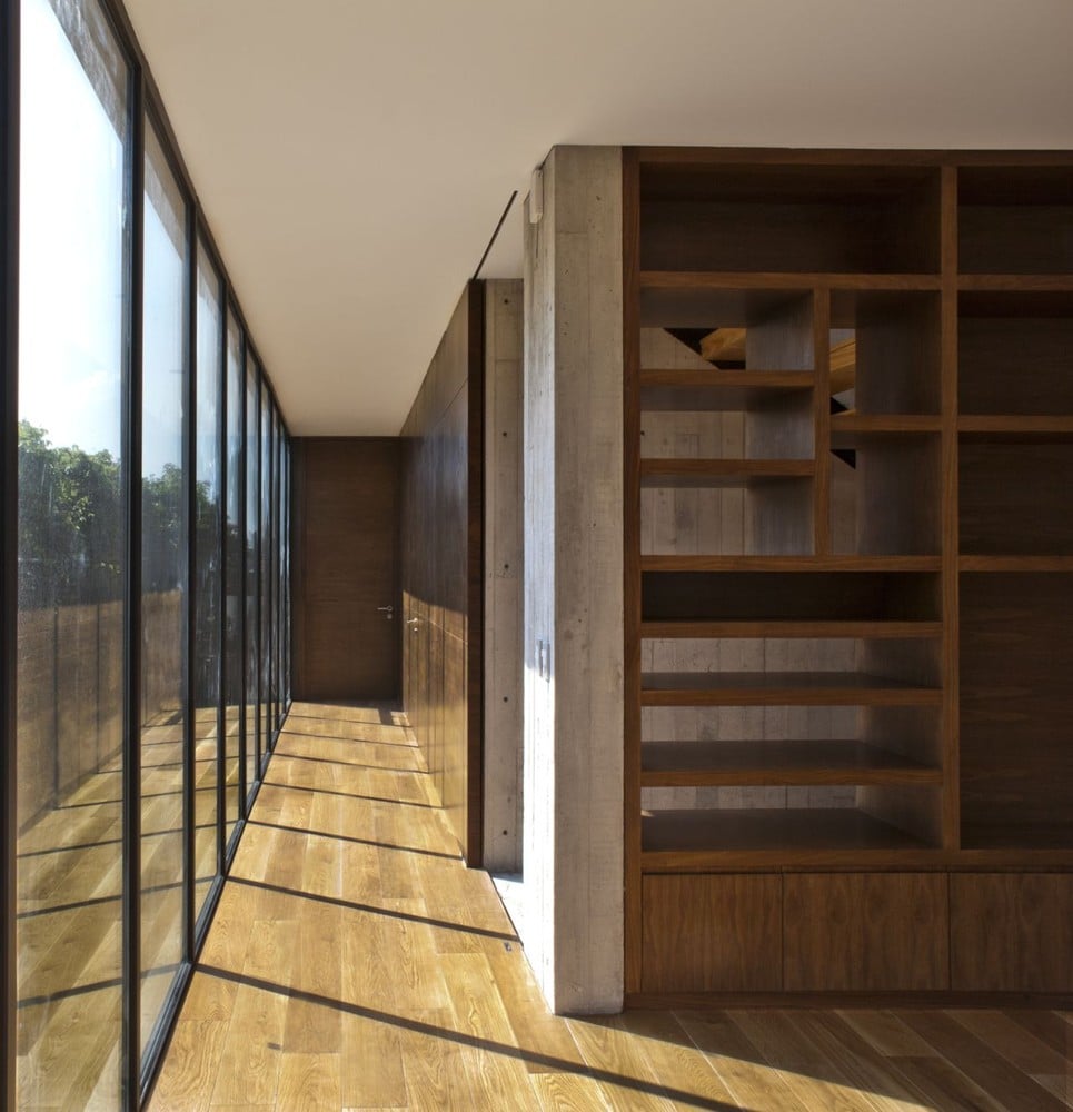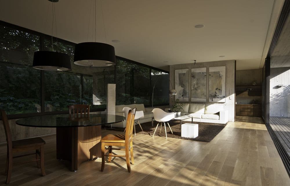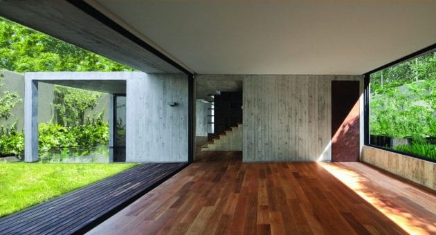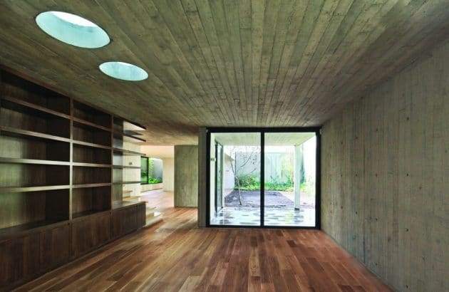 The Maruma House is a contemporary dwelling designed by Fernanda Canales in Mexico City. This rather large residence offers just under 5,500 square feet of living spaces wrapped in exposed concrete but opened up to the lush surroundings through plenty of glazed surfaces. It features an open floor plan connecting the communal areas together, creating a brighter and larger space.