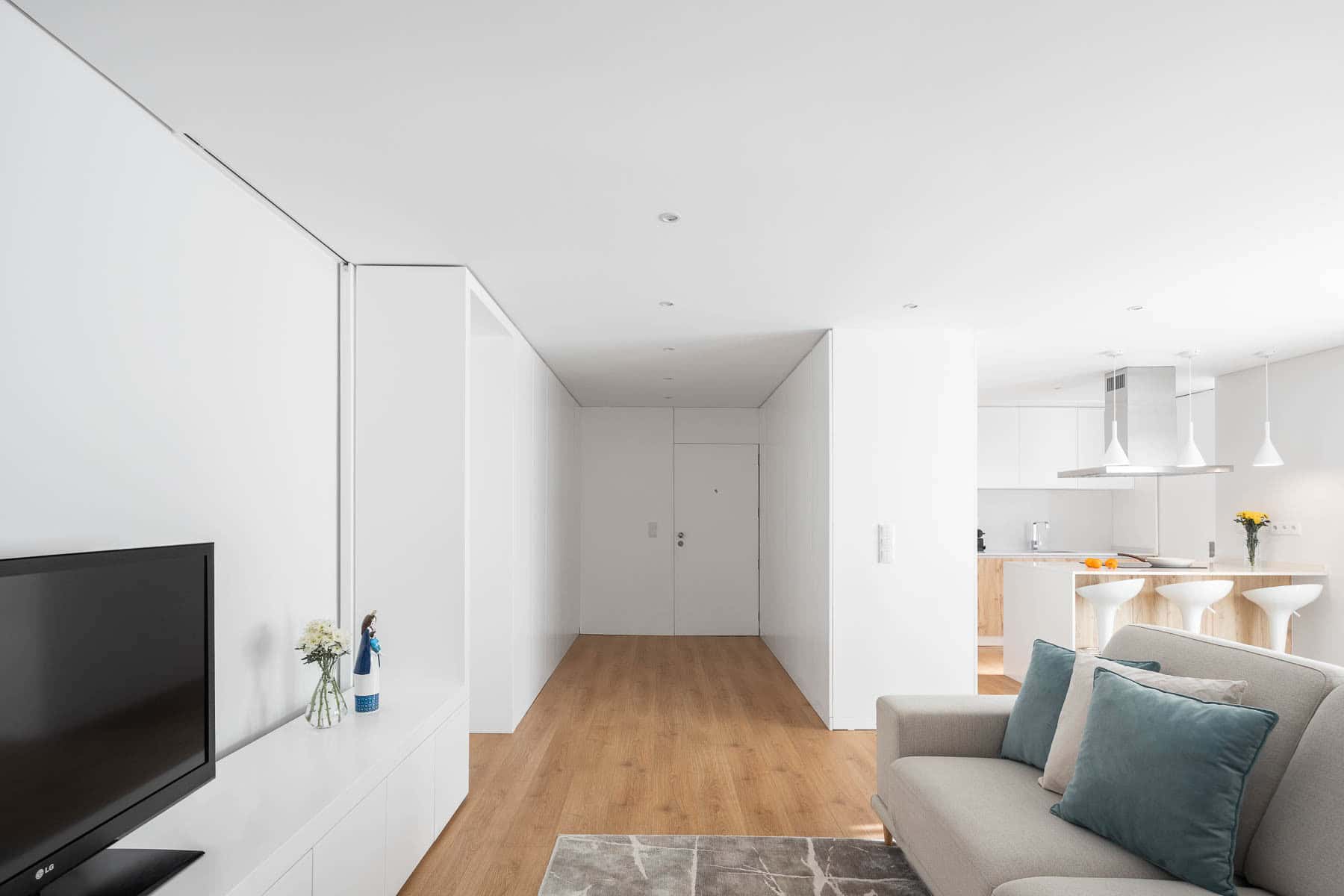 The idea was born from the client’s most basic requests; a reformulation of the apartment that would allow for a more fluid circulation, a more practical and visually clean environment without the need for furniture and decoration.